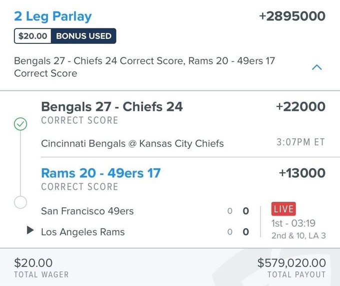 Fanduel Nfl Bettor Turns 20 To 579k By Guessing Rams Bengals Final Scores Bloomberg
